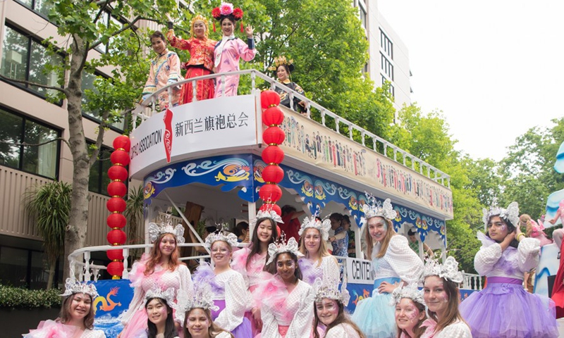 A float is seen on the street during the Farmers Santa Parade in Auckland, New Zealand, Nov. 29, 2020. (Photo by Sun Xueliang/Xinhua)