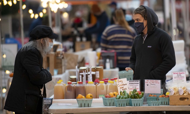People visit an outdoor market in Washington D.C., the United States, on Nov. 12, 2020.(Photo: Xinhua)