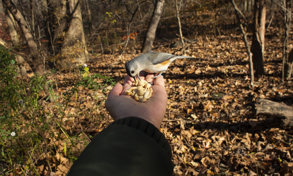 "It's helped me feel like I'm more connected to the community and to nature," the 28-year-old doctor said, offering nuts from the palm of her hand to a black-hooded chickadee and tufted titmouses.