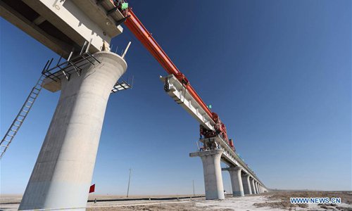 The Golmud-Korla railway is a strategic rail line and is of great significance to integrating and improving western China's transport system, promoting the regional economy, strengthening ethnic unity and national security there, and serving countries under the Belt and Road initiative as well.