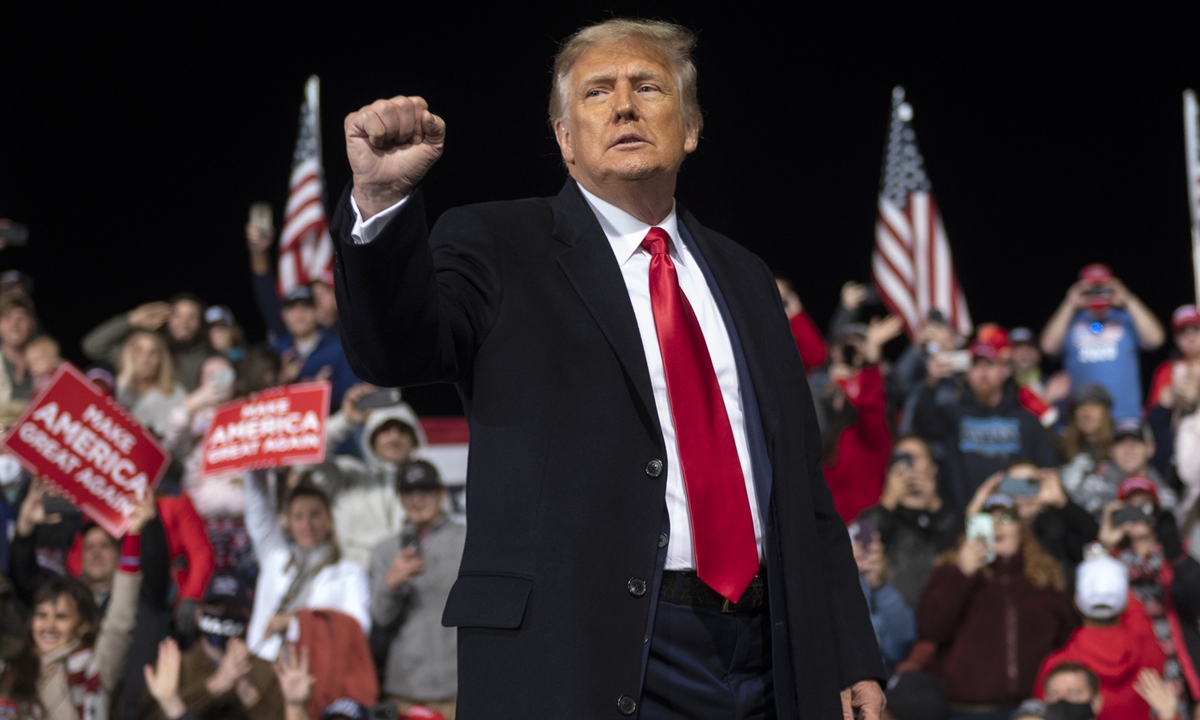 US President Donald Trump holds up his fist as he leaves the stage at the end of a rally to support Republican Senate candidates at Valdosta Regional Airport in Valdosta, Georgia, the US on Saturday. Photo: AFP