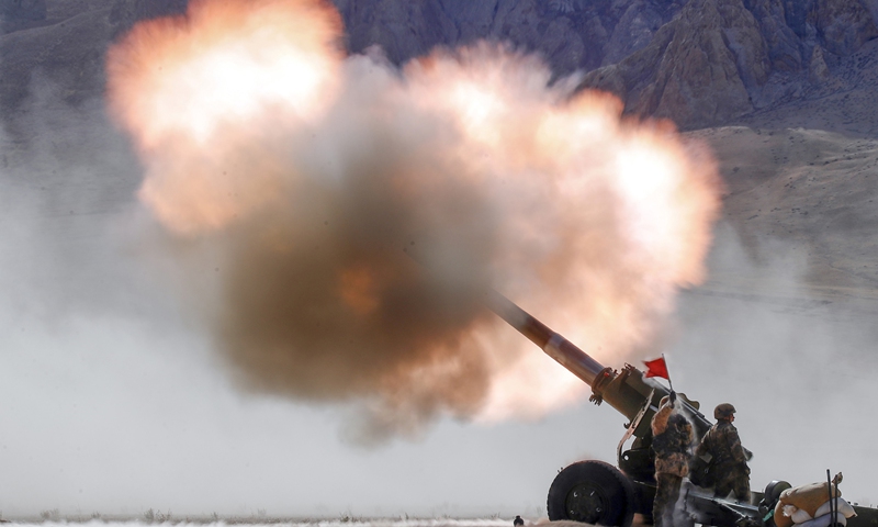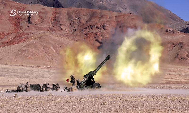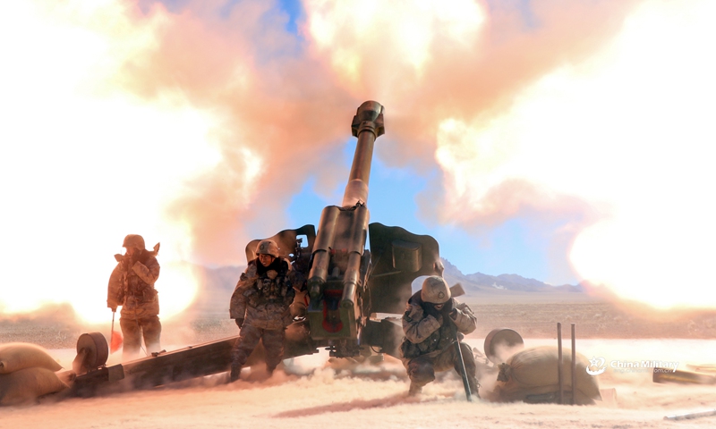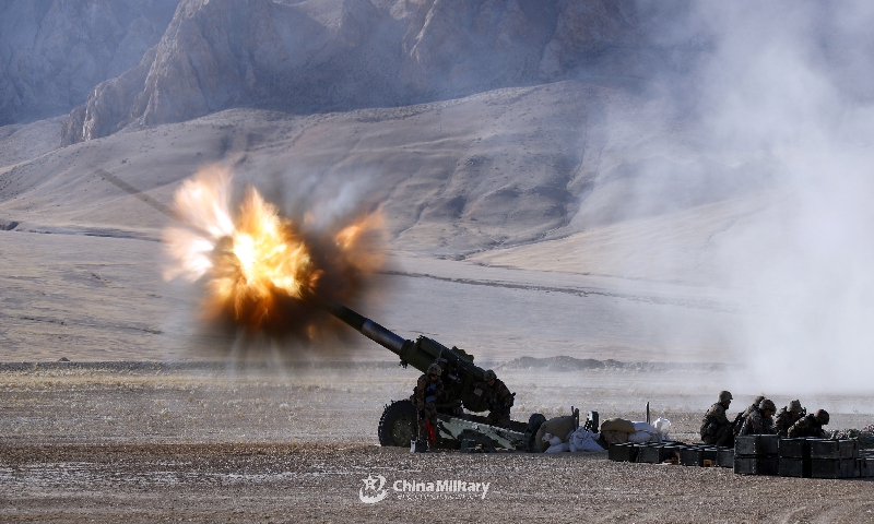 Artillerymen assigned to the PLA Xinjiang Military Command operate a PL-66 152 mm towed gun-howitzer to attack mock targets during a live-fire test in the snow-covered plateau area with an average elevation exceeding 4,500 meters in China's Xinjiang Uygur Autonomous Region in mid-November, 2020. (Photo: eng.chinamil.com.cn)