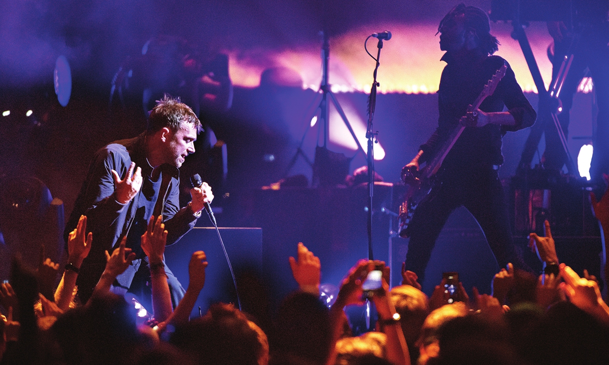 Damon Albarn (left), the creator behind British cartoon rockers Gorillaz, plays the Royal Arena in Copenhagen, Denmark on November 4, 2017. Photo: AFP