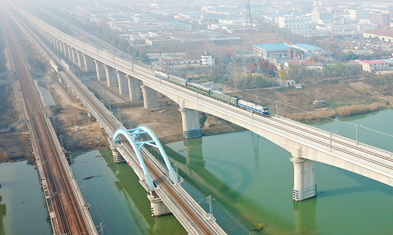 A new high-speed railway linking Xuzhou and Lianyungang in East China's Jiangsu Province started trial operations on Thursday in preparation for the official opening next month. The line will be part of the nation's arterial rail network, consisting of eight lines connecting east and west and north and south. Photo: cnsphoto