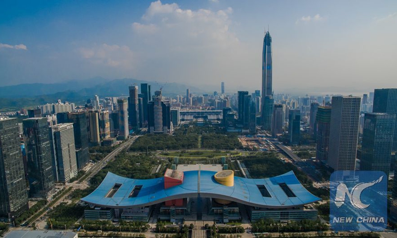 An aerial photo taken on Aug. 23, 2015 shows the Futian District in Shenzhen, south China's Guangdong Province. (Xinhua/Mao Siqian)