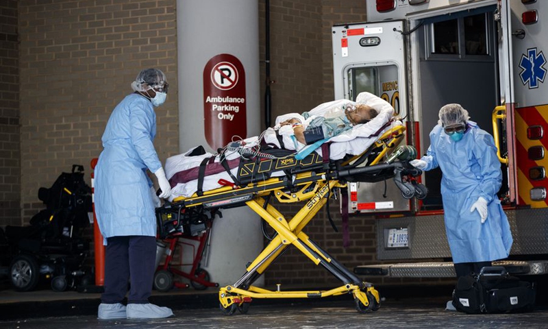 Medical workers carry a patient from an ambulance to George Washington University Hospital in Washington D.C., the United States. File Photo: Xinhua