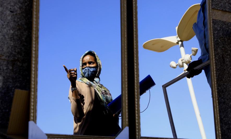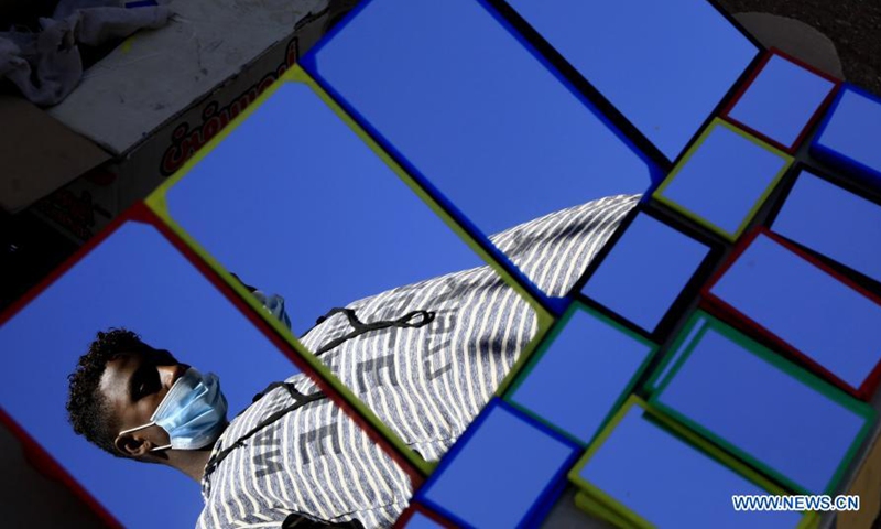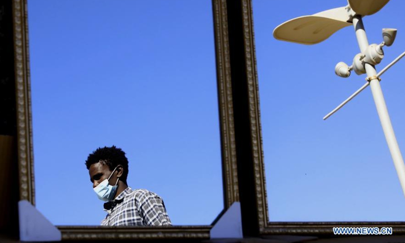 Photo taken on Dec. 17, 2020 shows mirrors reflecting an image of a Sudanese citizen wearing face mask as the health precaution against COVID-19 in Khartoum, Sudan. (Photo by Mohamed Khidir/Xinhua)