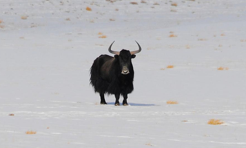 A wild yak is seen at the Haltent grassland in the Kazak Autonomous County of Aksay, northwest China's Gansu Province, Dec. 23, 2020.Photo:Xinhua