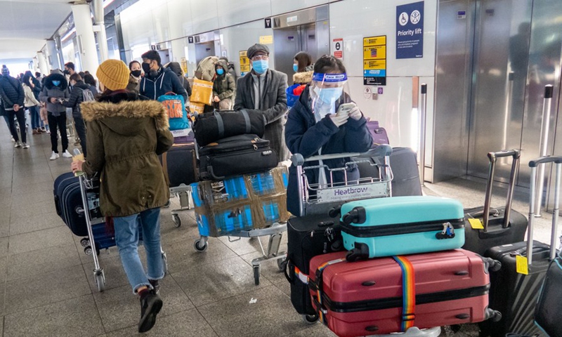 People queue to enter the departures area at Heathrow Airport in London, Britain, on Dec. 21, 2020.Photo:Xinhua
