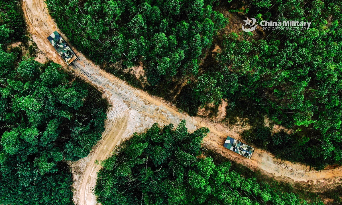 Armored vehicles attached to a combined arms brigade under the PLA 73rd Group Army participate in a driving skills training exercise in the woods on December 3, 2020. (eng.chinamil.com.cn/Photo by Xia Tao)