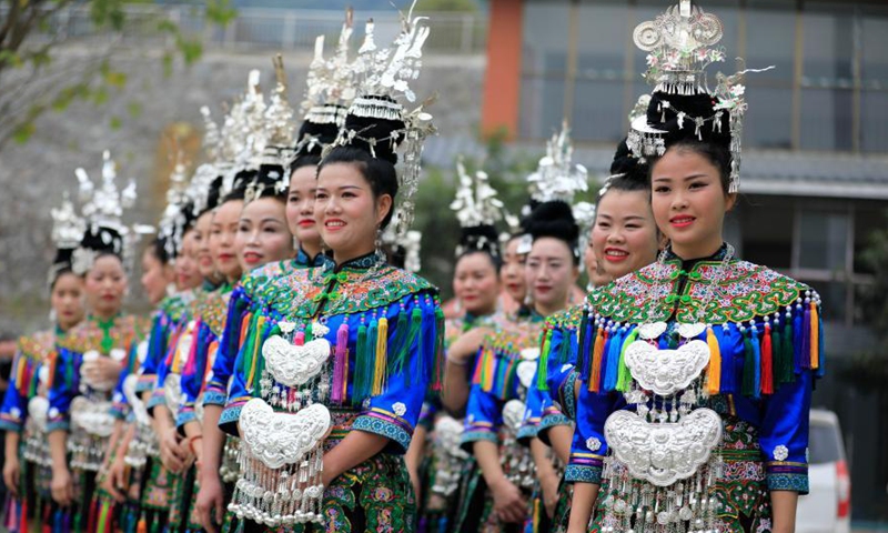 Singers take part in a Dong ethnic group chorus competition held in Congjiang County, southwest China's Guizhou Province, Dec. 27, 2020. A total of 78 choirs from the province's Congjiang and Liping counties participated in the competition on Sunday. Dong songs, the folk songs of the Dong ethnic group, are performed with a group of people to make a polyphonic singing called Kam Grand Choir without musical instruments or a conductor. It was inscribed on the World Intangible Cultural Heritage List in 2009. (Photo by Luo Jinglai/Xinhua)