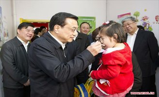 2008-2013 Member, Standing Committee, Political Bureau, CPC Central Committee; vice premier of the State Council and deputy secretary of its Leading Party Members' Group; director of Three Gorges Project Construction Committee and of South-to-North Water Diversion Construction Project Committee; head of the leading group of deepening the reform of medical and health care system, State Council File photo taken on April 25, 2011 shows Li Keqiang (left, front) feeds a child with sugar-pill in a health service center in Fangzhuang community in Beijing, capital of China, as he attends activities celebrating the children's vaccination day and inspects the work of healthcare reform in Beijing. Photo: Xinhua |