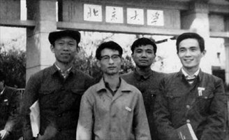 1978-1982 Student, Department of Law; and leader, Students' Union of Peking University Li Keqiang (second from right) stands with fellow classmates in front of the south entrance of Peking University in 1981. (Photo: ifeng.com) |