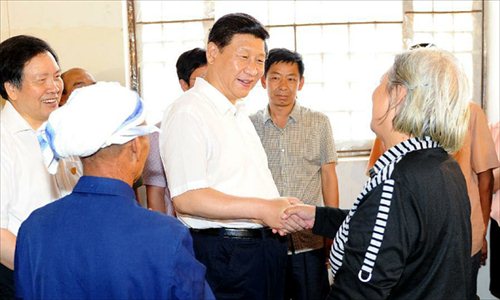 Chinese President Xi Jinping (C) talks with local citizens in Xibaipo, an old revolutionary base, in north China's Hebei Province. Xi made an inspection tour of Hebei Province from July 11 to 12. Photo: Xinhua