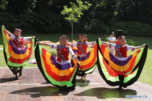 Chinese people perform during the opening of the Edinburgh Festival Carnival in Edinburgh, Britain, July 21, 2013. The Edinburgh Festival Carnival started on Sunday with music, dance, costumes, and street entertainment in all shapes, sizes, and sounds. With free admission for all, a total of 400 performers from Caribbean countries, Spain, Poland, Hungary, France, China and Britain among others presented over 35 colorful and fantastic acts to the audiences and visitors. (Xinhua/Guo Chunju)