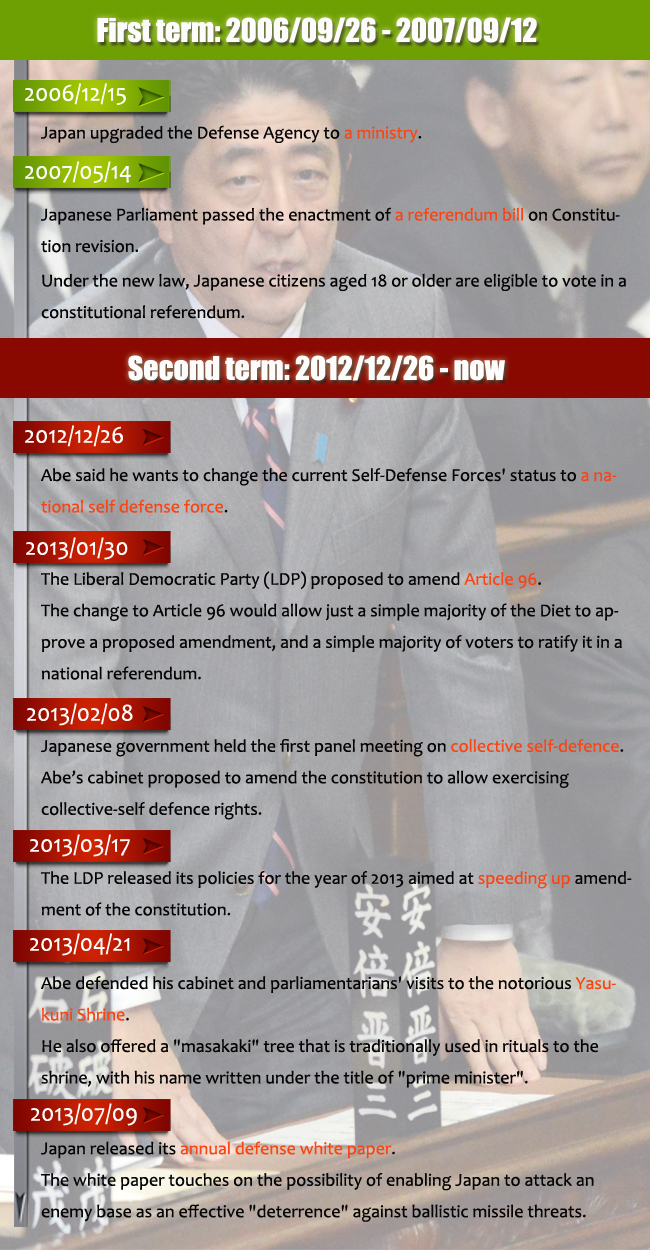 On amending the constitutionHayao Miyazaki, Japanese animator and director Revising Article 9 may not pose a problem legally if Article 96 is amended. But it will amount to a fraud. That is something that should never be done."Philip McNeil, Shizuoka-based political observer and author Ideologically, Abe wants to build a 'strong Japan' and along with a number of his senior ministers, harbors nationalistic convictions, evidenced by his own ministers' visits to a controversial shrine honoring war criminals.Hirohisa Suzuki,political analystThe concern now lies in the fact that such a radical change, following the result's of today's upper house election, is now " effectively" in the hands of one party who controls a simple majority of the government and the electorate. It means that the party can easily and rapidly add amendments to constitutional clauses, with little opposition.