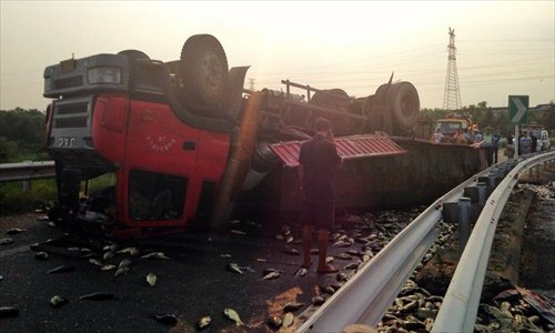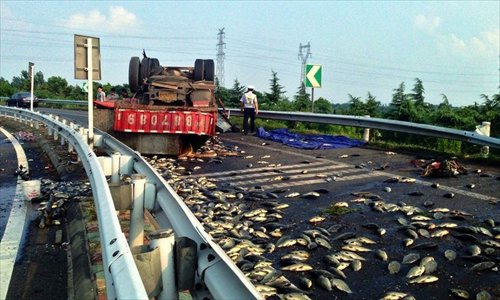 In similar news, Nanjing-based website longhoo.net reported that recently nearly 15,000 kilograms of fish were cooked through after spilling from an overturned truck onto scorching highway asphalt in Zhenjiang, Jiangsu Province.