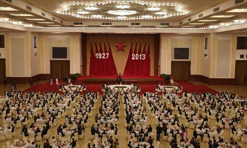 A reception is held by China's Ministry of Defense to celebrate the 86th anniversary of the establishment of the People's Liberation Army (PLA) at the Great Hall of the People in Beijing, capital of China, July 31, 2013. Photo: Xinhua