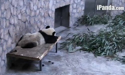 A panda caught on camera during one of its favorite pastimes - napping. A grown panda sleeps up to 10 hours a day in intervals of two to four hours. Pandas also defecate while they sleep; the number of droppings usually indicates how long a panda has napped.