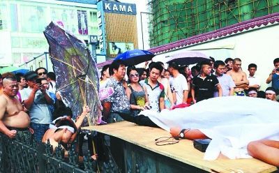 The performance of a street vendor in Wuhan, Hubei Province, who played dead on August 3 to protest their dissatisfaction with how