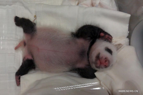 A giant panda cub nicknamed "Yuan Zai" rests at the Taipei Zoo in Taipei, East China's Taiwan, August 3, 2013. The zoo kicked off a month-long event on August 4, 2013 to name the cub by live and online activities. The cub, born on July 6, is the first baby of a pair of giant pandas, namely "Tuan Tuan" and "Yuan Yuan", who were given as a goodwill gift to Taiwan by the Chinese mainland. (Xinhua)