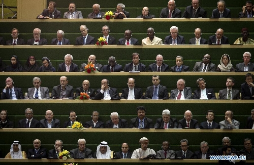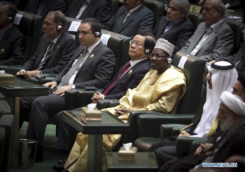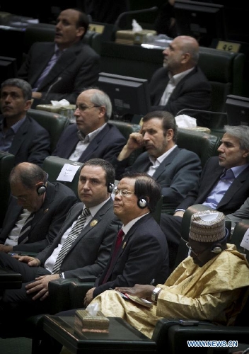 Foreign diplomats in Iran listen to Hassan Rouhani (not in the picture) during a swearing-in ceremony at the parliament in Tehran, Iran, on Aug. 4, 2013. Hassan Rouhani was sworn in as Iran's new president on Sunday amid hopes that he will bring changes to the country's social and economic sectors as well as its foreign relations. (Xinhua/Ahmad Halabisaz)
