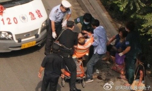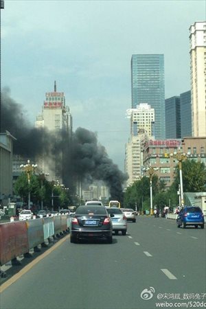 One person was killed and at least six other were injured after a bus caught fire Monday morning in Urumqi, Northwest China's Xinjiang Uyghur Autonomous Region.Photo: weibo.com