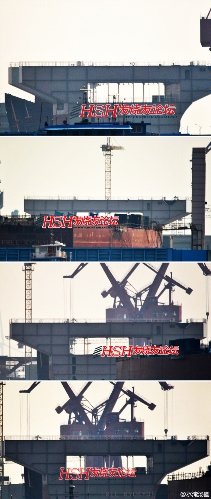 Sections of a ship at Jiangnan Group's Changxing Island shipbuilding facility near Shanghai may be parts of China's first indigenously built aircraft carrier.