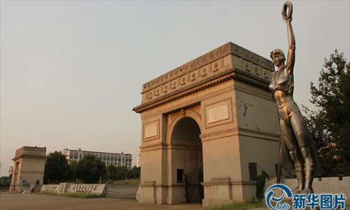 Athena, the Greek goddess of wisdom, stands next to a replica of France’s Arc de Triomphe at the entrance of the university. Photo: CFP