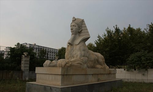 A copycat Sphinx sits near the university entrance. Photo: CFP
