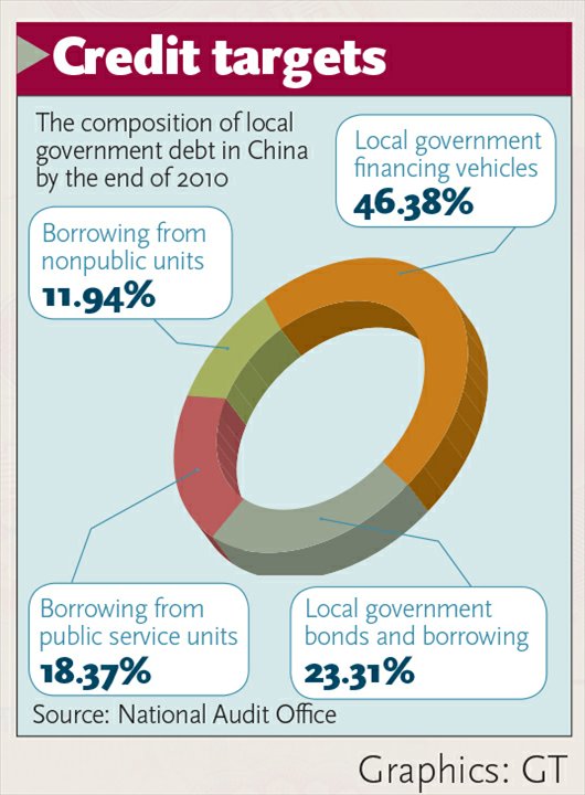 Reining in culture of debtWhile the full extent of local government debt remains unknown, many have started looking for the factors that led to the worrying levels of debt now encountered. Several experts reached by the Global Times said the fundamental reason was local officials' eagerness to invest generously in infrastructures to lift GDP growth.