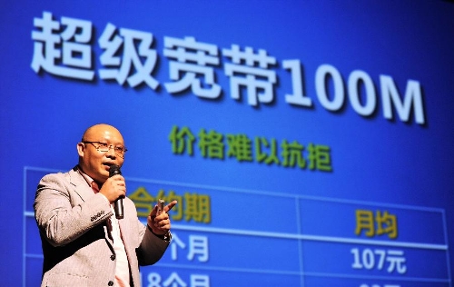 The file photo taken on April 15, 2013 shows a staff member of the Great Wall Broadband Network introduces "super-broadband service" with the speed of 100 Mbps in north China's Tianjin Municipality. The State Council has recently elevated national broadband development as a national strategy and announced an implementation timetable for its development over the coming eight years. Photo: Xinhua