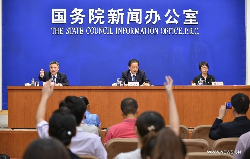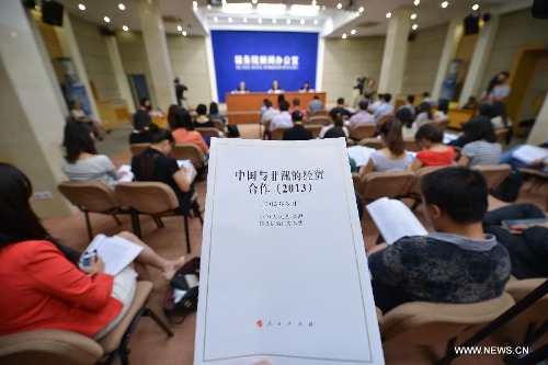 The press conference on the white paper on China-Africa Economic and Trade Cooperation is held in Beijing, China, Aug. 29, 2013. The white paper, released by the Information Office of China's State Council, underlines latest achievements of the mutually-beneficial cooperation between China and African countries. (Xinhua/Li Xin)