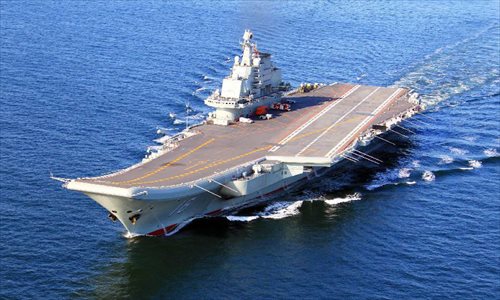 This undated photo shows China's first aircraft carrier, the Liaoning, sailing on the sea. Photo: Xinhua