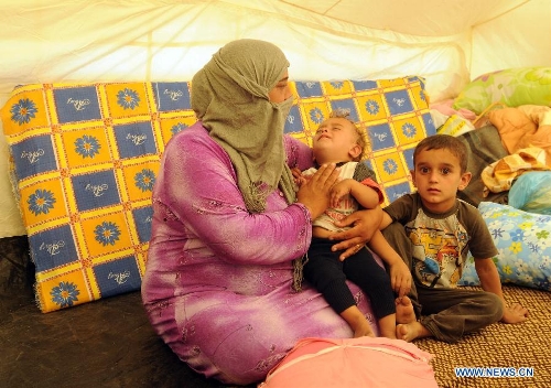 Syrian refugees are seen in a refugee camp at the Quru Gusik in Iraq, Aug. 25, 2013. The United Nations' refugee agency on Tuesday called on Syria's neighbors to accept all the Syrians who were forced to flee the bloody conflict in their homeland. (Xinhua/Liang Youchang)