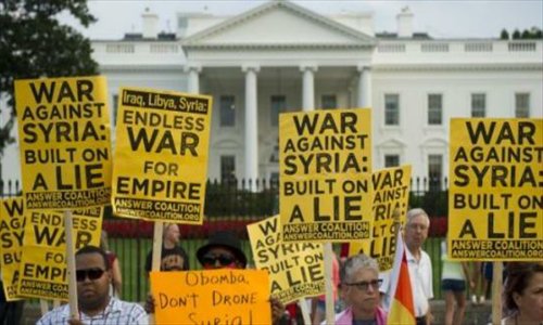Anti-war protests have been held across the world, as the US openly discusses military action against Syria. Photo: CCTV.com