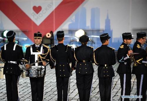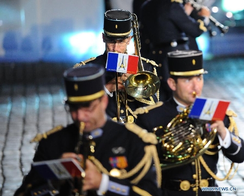 Members of the Corps Band of Versailles of France perform during the International Military Music Festival "Spasskaya Tower" at Moscow's Red Square on Sept. 1, 2013. The units of the State Honor Guards and the leading Russian and foreign military bands participate in the festival runs from Sept. 1 to 8. (Xinhua/Dai Tianfang)
