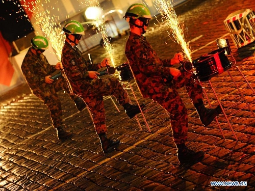 Members of the Swiss Army Central Band perform during the International Military Music Festival "Spasskaya Tower" at Moscow's Red Square on Sept. 1, 2013. The units of the State Honor Guards and the leading Russian and foreign military bands participate in the festival runs from Sept. 1 to 8. (Xinhua/Dai Tianfang)