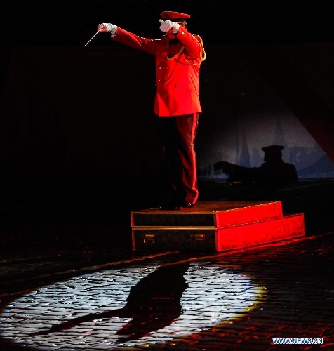 Conductor of the Corps Band of Versailles of France performs during the International Military Music Festival "Spasskaya Tower" at Moscow's Red Square on Sept. 1, 2013. The units of the State Honor Guards and the leading Russian and foreign military bands participate in the festival runs from Sept. 1 to 8. (Xinhua/Dai Tianfang)