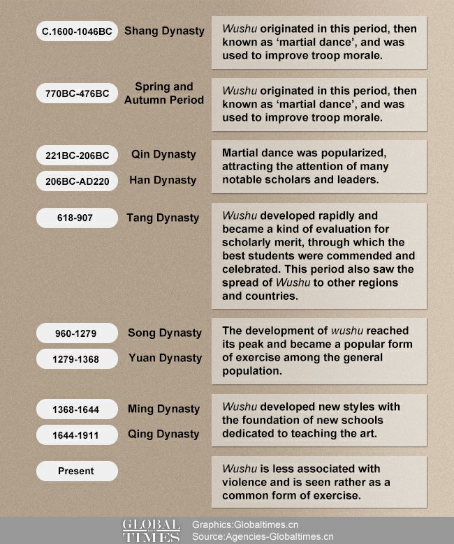 ● Olympic eventIn 2008, wushu, was accepted as a special event in the 2008 Beijing Olympic Games.