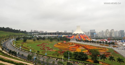 Photo taken on Sept. 3, 2013 shows the outdoor scene of the Nanning International Convention and Exhibition Center in Nanning, capital of southwest China's Guangxi Zhuang Autonomous Region. The 10th China-ASEAN Expo opened in the center on Tuesday. (Xinhua/Lu Bo'an)