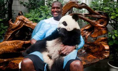 O'Neal pays a visit to panda base in Sichuan. Photo: CCTV.com