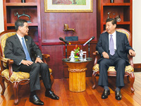 Xi meets Hong Kong Chief Executive Leung Chun-ying ●Xi said that the central government's stance of supporting Hong Kong's economic prosperity and social stability is consistent and firm. ●Xi hoped that the HKSAR government will continue governing according to law and paying special attention to developing economy and improving people's livelihood. |