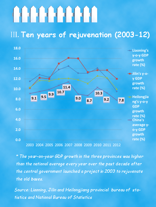 In October 2003, the central government launched a project to rejuvenate industrial bases across the nation, including those in the northeast.