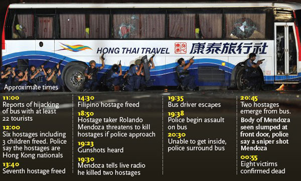 Chinese government strongly condemned the hostage-taking in Manila and demanded the Philippine government thoroughly investigate the incident.