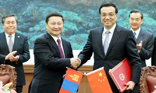 The document was signed by Chinese Premier Li Keqiang and visiting Mongolian Prime Minister Altankhuyag Norov at the Great Hall of the People in Beijing after an hour of talks.