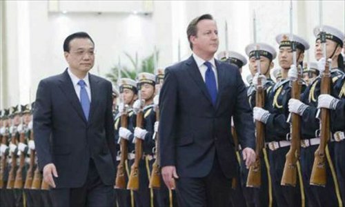 Chinese Premier Li Keqiang accompanies British Prime Minister David Cameron to view an honour guard during a welcoming ceremony inside the Great Hall of the People on December 2, 2013 in Beijing, China. At the invitation of Chinese Premier Li Keqiang, British Prime Minister David Cameron will pay an official visit to China from December 2 to 4.Photo: CE.cn