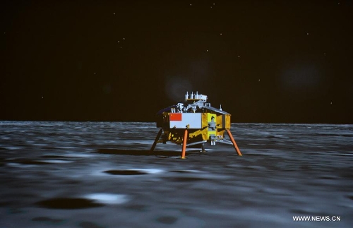 Photo taken on Dec. 14, 2013 shows the lunar probe Chang'e-3 spreading two wings on the screen of the Beijing Aerospace Control Center in Beijing, capital of China. China's lunar probe Chang'e-3, with the country's first moon rover onboard, landed on the moon on Saturday night, marking the first time that China has sent a spacecraft to soft land on the surface of an extraterrestrial body. (Xinhua/Li Xin)