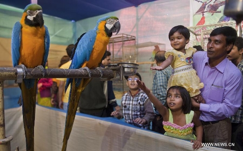 Indian children visit a bird show in Calcutta, capital of eastern Indian state West Bengal, Dec. 25, 2013. (Xinhua/Tumpa Mondal)