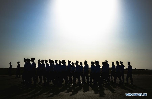 A new batch of graduated pilots march during the 167th class graduation at the Hatzerim Air Base in Be'er Sheva, southern Israel, on Dec. 26, 2013. The Israeli Air Force welcomed into its ranks a new batch of pilots, with the country's political and military leaderships on hand to congratulate here on Thursday. (Xinhua/IDF/Judah Ari Gross)
